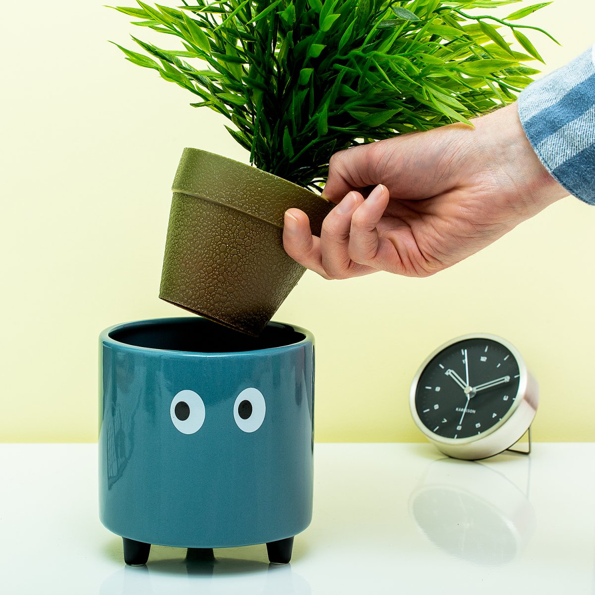 De Bloempot met ogen van Fisura is de gezelligste die je zult tegenkomen. Door zijn grappige ogen is het net alsof je gezelschap hebt. Zet hem op je bureau, op de eettafel of gewoon in de vensterbank. De vrolijke bloempot wordt extra leuk als je hem of haar een kleurrijk kapsel geeft in de vorm van een vrolijk plantje.