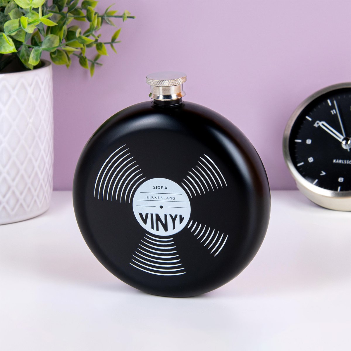 Heupflacon met het uiterlijk van een LP van Kikkerland