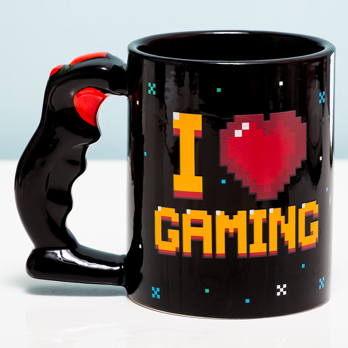 Een beker waarmee je aan iedereen kunt laten zien hoe dol je bent op gamen? Dat is de I Love Gaming warmtegevoelige mok van Out of the Blue. Deze grappige mok lijkt misschien heel gewoontjes, maar heeft twee unieke details: hij verandert als je er warme drank in schenkt en hij heeft een oor dat eruit ziet als een gaming trigger. Giet hete koffie in de mok en de tekst I Love Gaming verschijnt.