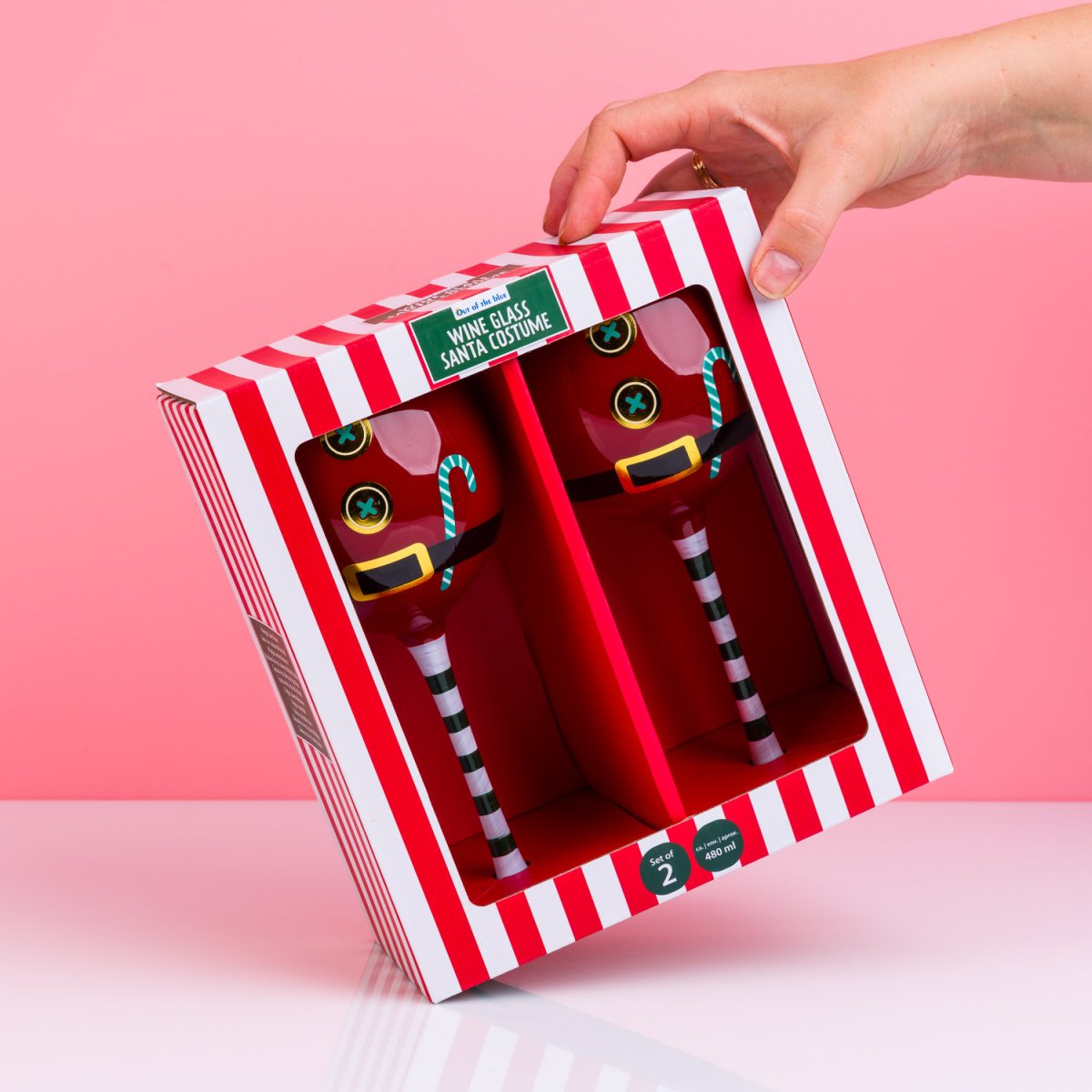 Hoe maak jij kerst met je schoonouders dragelijk? Met het Kerstman wijnglas (set van 2) van Out of the Blue natuurlijk. Een set van twee hilarische wijnglazen, want ze hebben een kerstmankostuum aangetrokken. De kerstman wijnglazen hebben bovendien een flinke inhoud van bijna een halve liter. Daarmee kom je zelfs de kerstbrunch én het kerstdiner wel door.