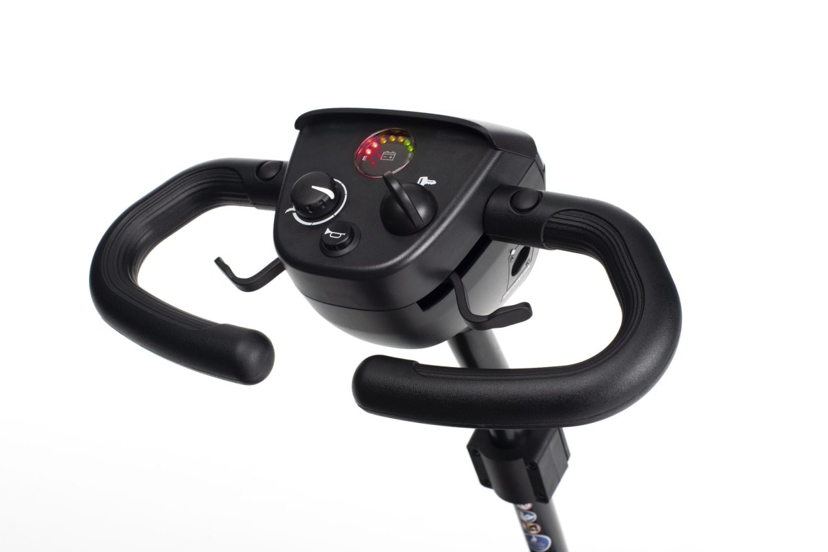 - Andere kenmerken zijn een draaibare stoel, een batterijdisplay en een opklapbare armleuning.
