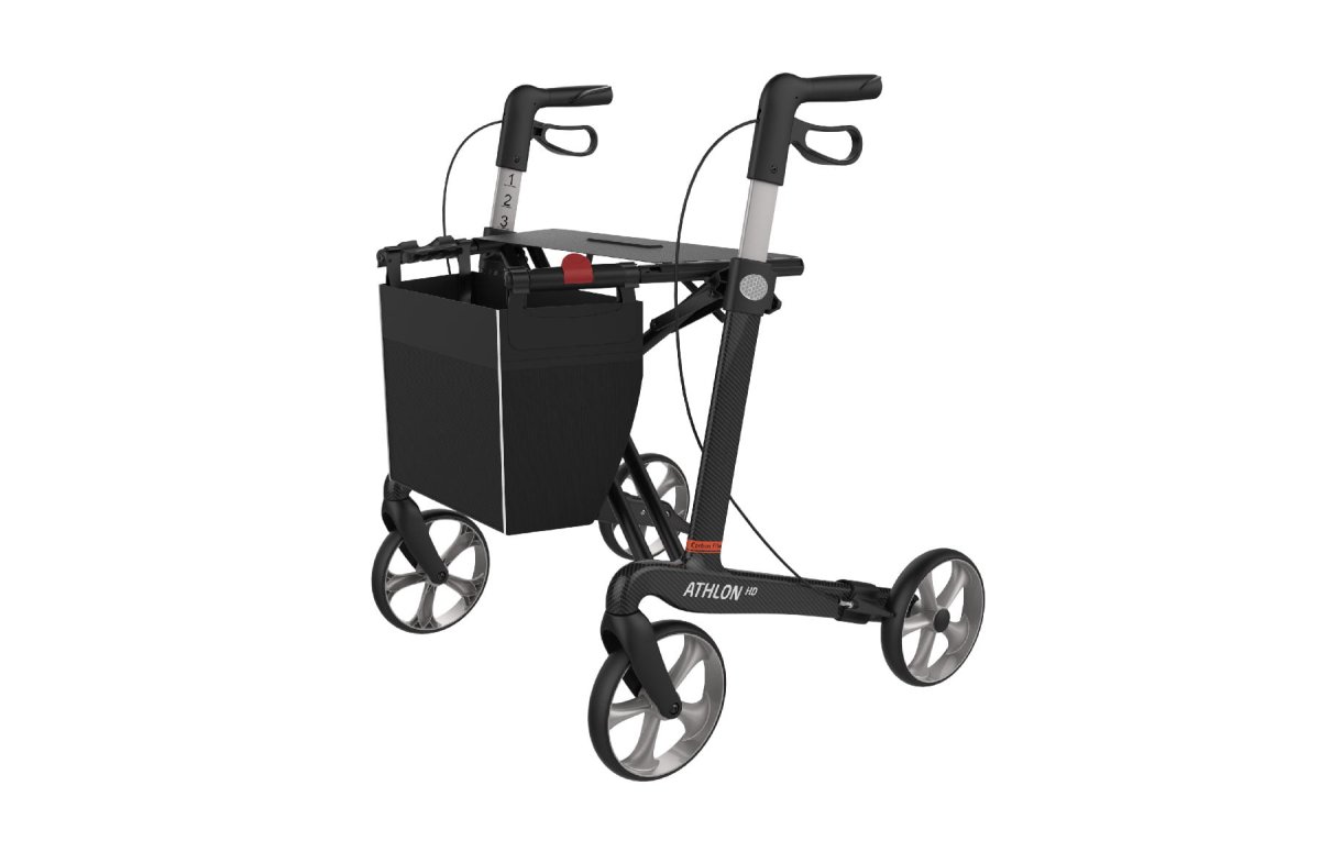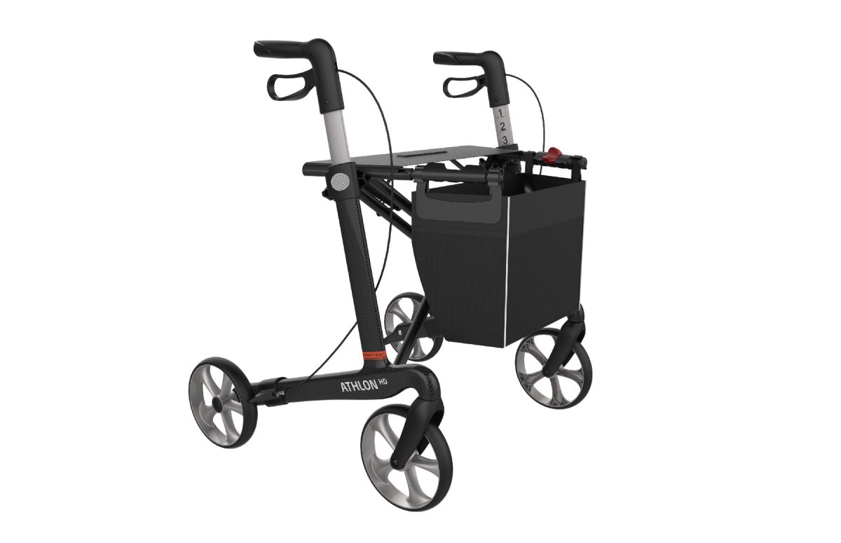 De Athlon HD (heavy duty) rollator vertegenwoordigt de elegantie en de prestaties van de Rehasense rollators. De Athlon weegt slechts 5,8 kg waardoor u ideaal rijcomfort ervaart. Zeer uitgebalanceerd ontwerp, optimaal rechtstandig op te tillen. Het is met een eigen gewicht van ongeveer 5,8 kg een van de lichtste carbon xl rollators voor op de markt.