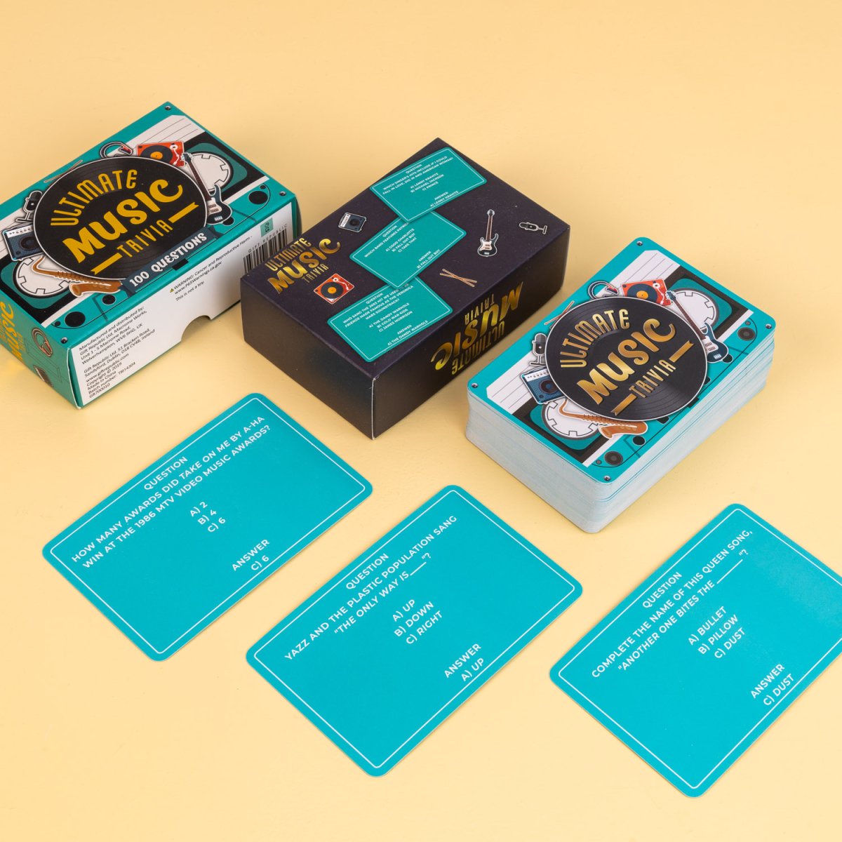 Trivia spel van Gift Republic. Kennisquiz met 100 vragen op het gebied van televisie. Spel met open en multiple choice vragen die allemaal over tv-shows gaan. Om thuis te spelen met vrienden, maar het trivia spel is ook leuk om mee op reis te nemen. Weet jij als eerste het goede antwoord te geven? Let op: dit is een Engels spel.